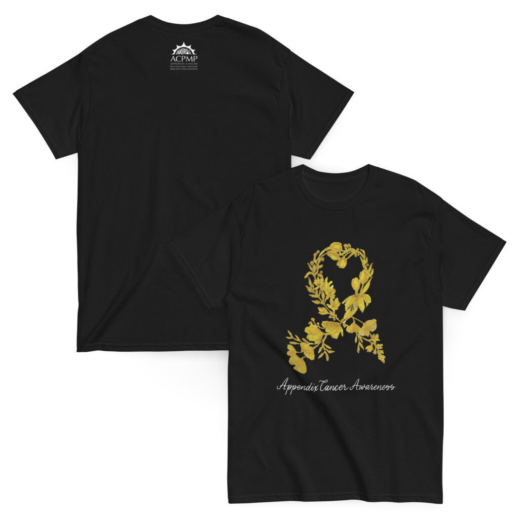 Wearable art with a cause. This classic 100% cotton unisex tee features an original watercolor and calligraphy, ‘Hope in Bloom,’ by Elizabeth Amaya, winner of our 2024 Shades of Amber: Creative Contest for a Cure. Soft, durable, and made to last—every purchase helps fund appendix cancer research and awareness.