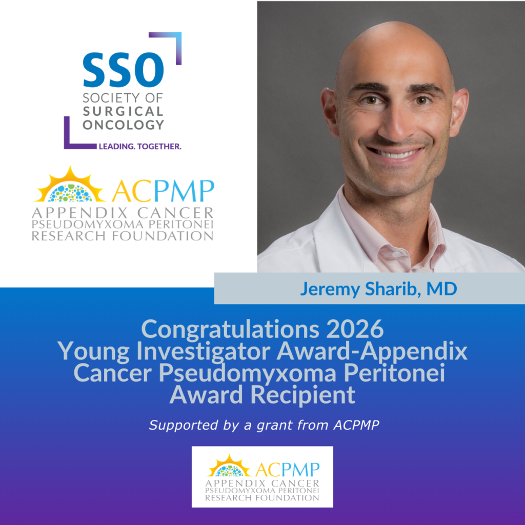 The following researcher received the 2026 $25,000 Young Investigator Award funded by The Appendix Cancer PMP Research Foundation and administered by the Society of Surgical Oncology (SSO):
